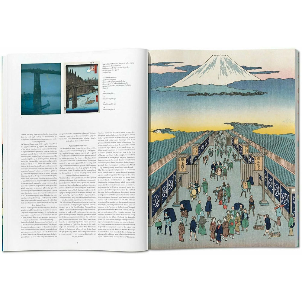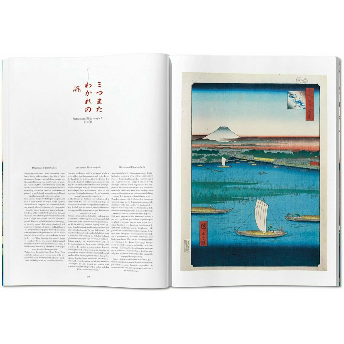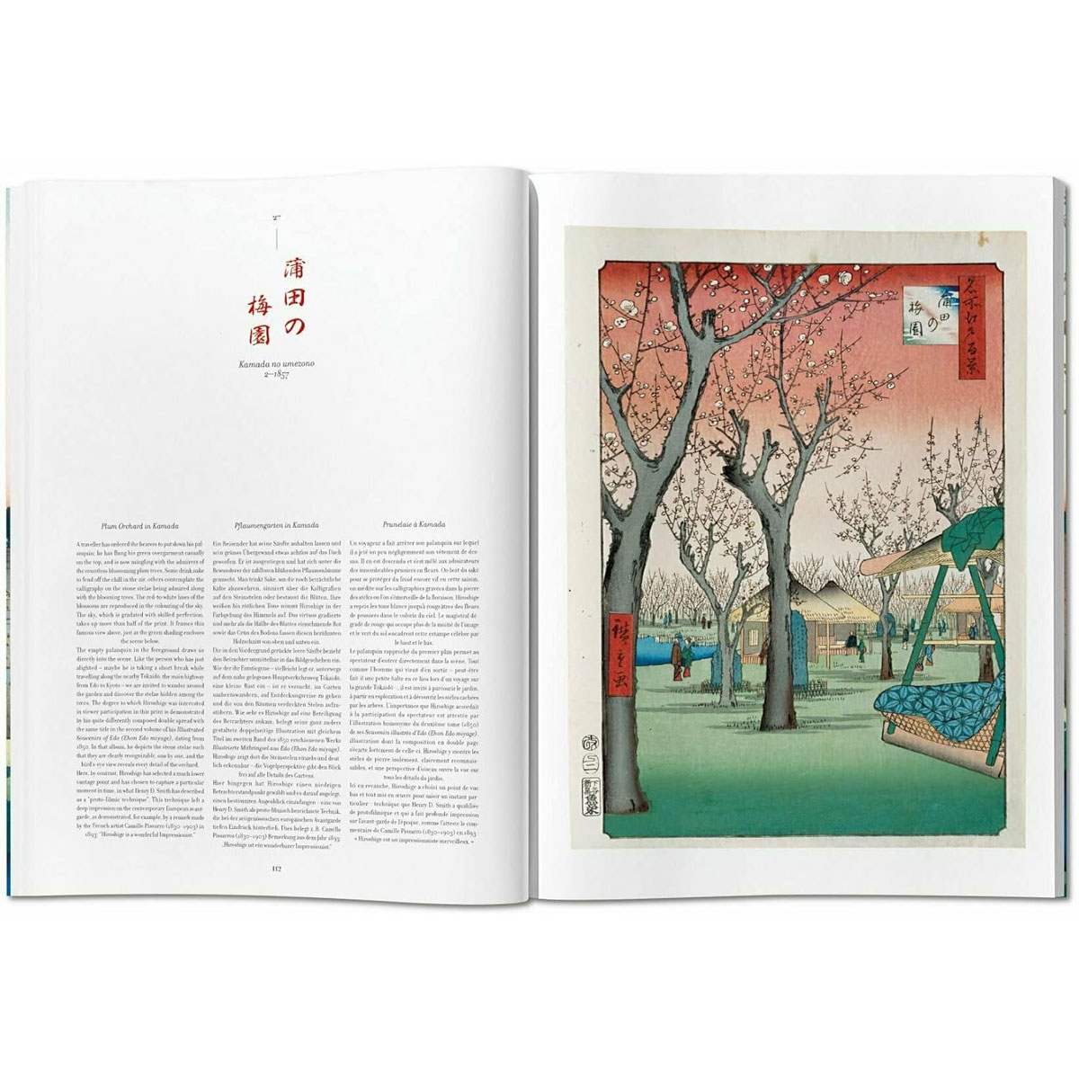 اوتاگاوا هیروشیگه (1797-1858) یکی از آخرین هنرمندان بزرگ در سنت ukiyo-e بود. ukiyo-e که در لغت به معنای "تصاویر جهان شناور" است، ژانر خاصی از هنر بود که بین قرنهای 17 و 19 شکوفا شد و ایده بصری جهان غرب از ژاپن را مشخص کرد. از بسیاری جهات تصاویر لذتگرایی، صحنههای ukiyo-e اغلب نورها و جاذبههای ادو (توکیو امروزی) را نشان میدهند: زنان زیبا، بازیگران و کشتیگیران، زندگی شهری و مناظر دیدنی. اگرچه هیروشیگه سوژههای مختلفی را به تصویر میکشید، اما بیشتر به خاطر مناظر معروف بود، با آخرین سریال شاهکار معروف به «صد منظره مشهور ادو» (1856-1858)، که صحنههای مختلفی از شهر را در طول فصلها، از خیابانهای خرید شلوغ گرفته تا باغهای گیلاس باشکوه، به تصویر میکشید. این چاپ مجدد، که به روش سنتی ژاپنی چاپ شده است، از یکی از بهترین مجموعه های اصلی کامل از چاپ های چوبی متعلق به موزه هنر یادبود اوتا در توکیو ساخته شده است. این تصویر هر یک از 120 تصویر را با یک توضیح همراه می کند و به خوانندگان این امکان را می دهد که خود را در این مناظر زیبا و پر جنب و جوش غوطه ور کنند که به پارادایم های ژاپنیسم تبدیل شد و هنرمندان امپرسیونیست، پست امپرسیونیست و هنر نو را به طور یکسان، از ونسان ون گوگ تا جیمز مک نیل ویستلر، الهام بخش کردند.