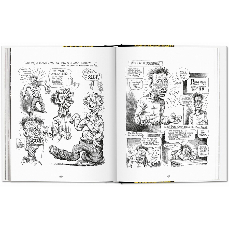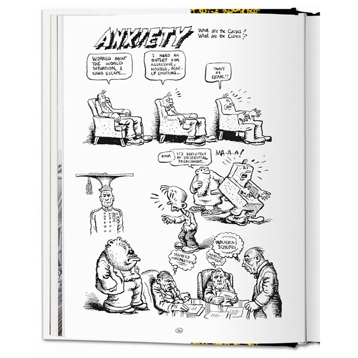 • در طول کتاب، کرومب شخصیت‌های معروف خودش مثل Mr. Natural و Snoids را به تصویر می‌کشد و همچنین طرح‌هایی با تم طنز، اعتراض سیاسی، دغدغه‌های وجودی و نقد وضعیت اجتماعی را ارائه می‌دهد.